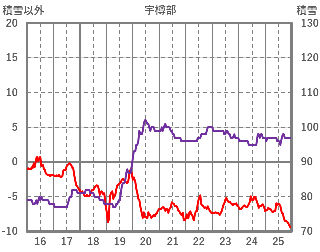 | 日 | 時 | 気温 | 降水 | 風向/風速 | 日照 | 積雪 | 降雪 |