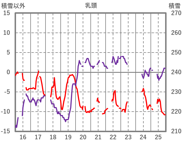 | 日 | 時 | 気温 | 降水 | 風向/風速 | 日照 | 積雪 | 降雪 |