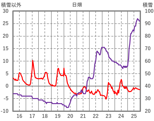 | 日 | 時 | 気温 | 降水 | 風向/風速 | 日照 | 積雪 | 降雪 |
