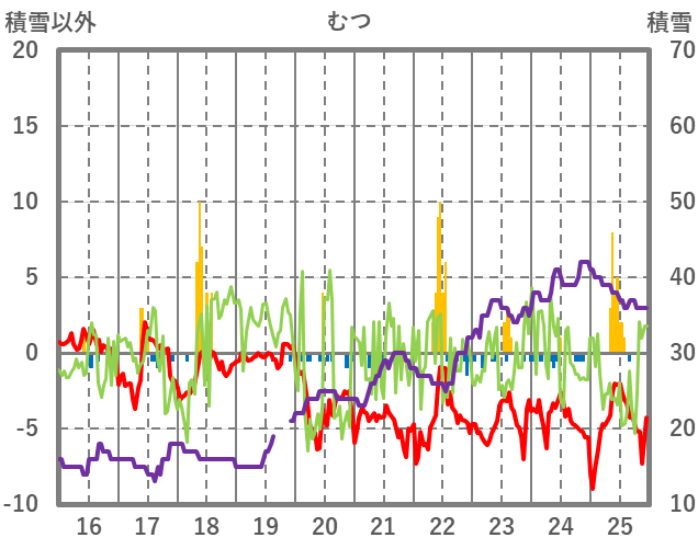 | 日 | 時 | 気温 | 降水 | 風向/風速 | 日照 | 積雪 | 降雪 |