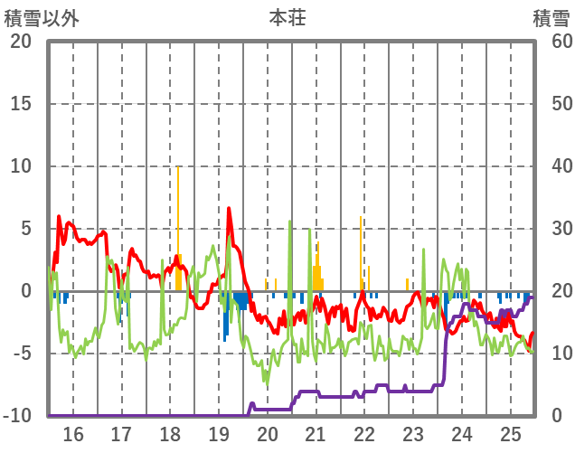 | 日 | 時 | 気温 | 降水 | 風向/風速 | 日照 | 積雪 | 降雪 |