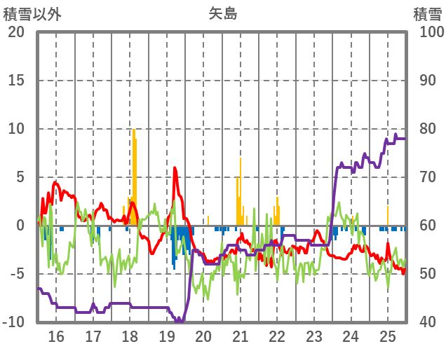 | 日 | 時 | 気温 | 降水 | 風向/風速 | 日照 | 積雪 | 降雪 |