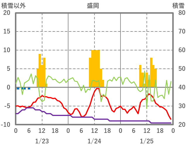 | 日 | 時 | 気温 | 降水 | 風向/風速 | 日照 | 積雪 | 降雪 |