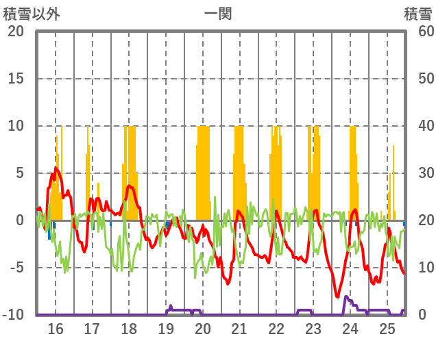 | 日 | 時 | 気温 | 降水 | 風向/風速 | 日照 | 積雪 | 降雪 |