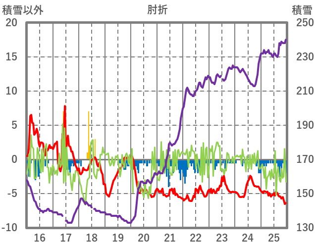 | 日 | 時 | 気温 | 降水 | 風向/風速 | 日照 | 積雪 | 降雪 |
