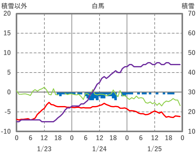| 日 | 時 | 気温 | 降水 | 風向/風速 | 日照 | 積雪 | 降雪 |