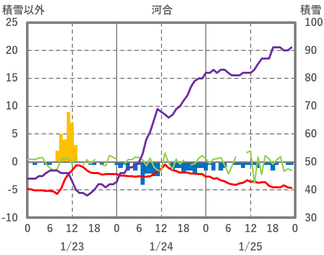 | 日 | 時 | 気温 | 降水 | 風向/風速 | 日照 | 積雪 | 降雪 |