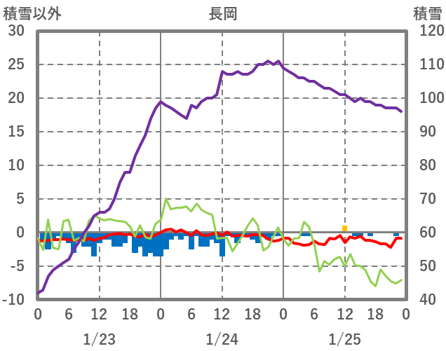 | 日 | 時 | 気温 | 降水 | 風向/風速 | 日照 | 積雪 | 降雪 |