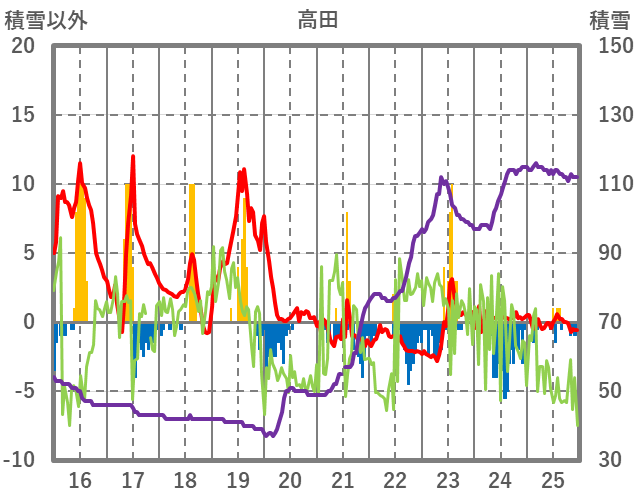 | 日 | 時 | 気温 | 降水 | 風向/風速 | 日照 | 積雪 | 降雪 |