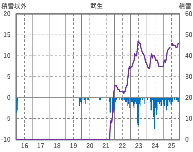 | 日 | 時 | 気温 | 降水 | 風向/風速 | 日照 | 積雪 | 降雪 |