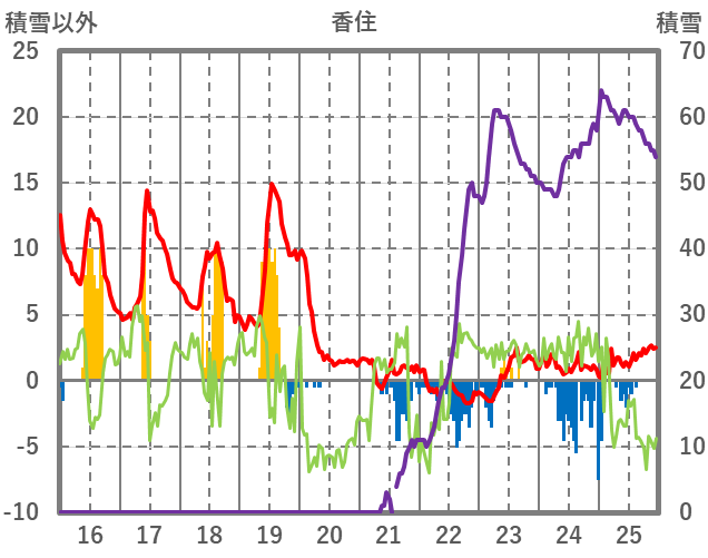 | 日 | 時 | 気温 | 降水 | 風向/風速 | 日照 | 積雪 | 降雪 |