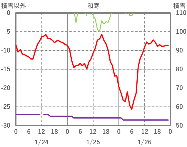 | 日 | 時 | 気温 | 降水 | 風向/風速 | 日照 | 積雪 | 降雪 |
