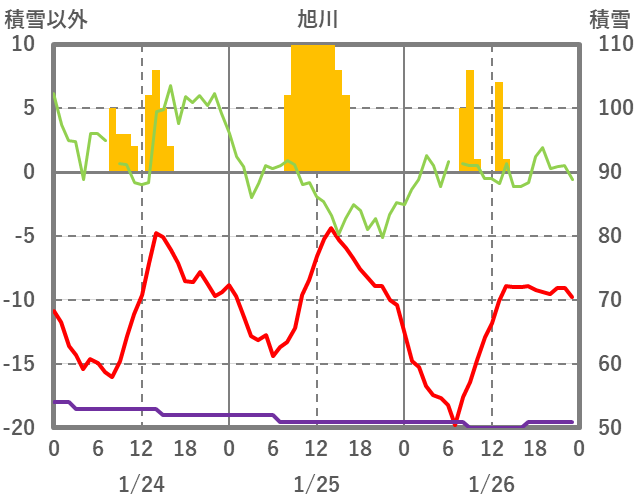 | 日 | 時 | 気温 | 降水 | 風向/風速 | 日照 | 積雪 | 降雪 |