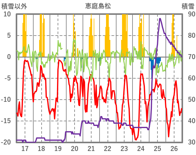 | 日 | 時 | 気温 | 降水 | 風向/風速 | 日照 | 積雪 | 降雪 |