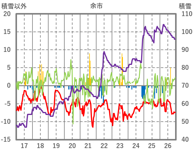 | 日 | 時 | 気温 | 降水 | 風向/風速 | 日照 | 積雪 | 降雪 |