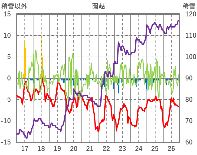 | 日 | 時 | 気温 | 降水 | 風向/風速 | 日照 | 積雪 | 降雪 |