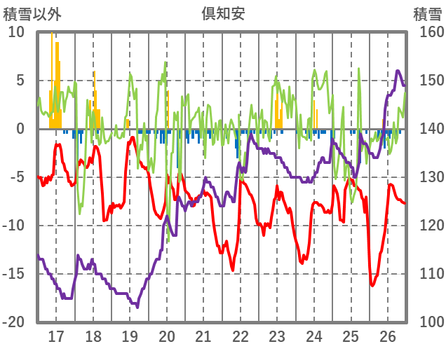 | 日 | 時 | 気温 | 降水 | 風向/風速 | 日照 | 積雪 | 降雪 |