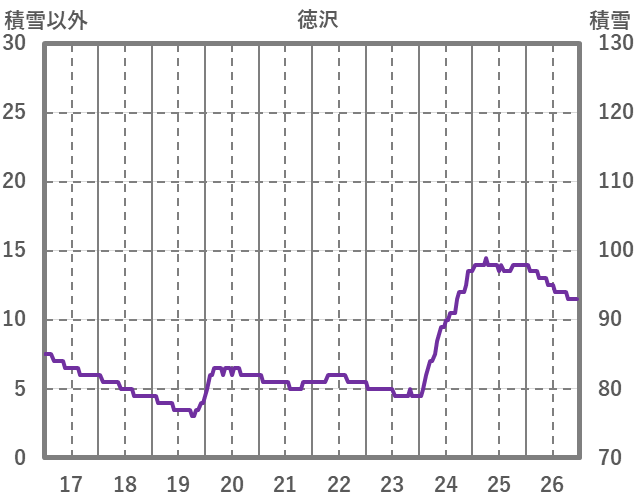 | 日 | 時 | 気温 | 降水 | 風向/風速 | 日照 | 積雪 | 降雪 |