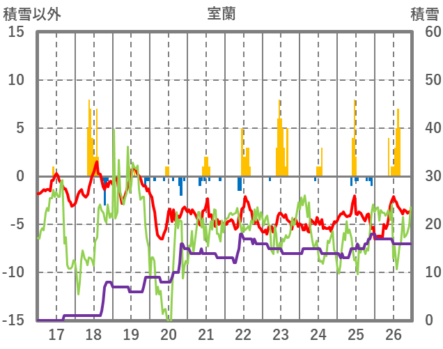 | 日 | 時 | 気温 | 降水 | 風向/風速 | 日照 | 積雪 | 降雪 |