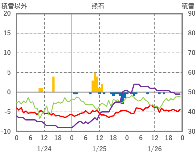 | 日 | 時 | 気温 | 降水 | 風向/風速 | 日照 | 積雪 | 降雪 |