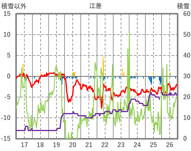 | 日 | 時 | 気温 | 降水 | 風向/風速 | 日照 | 積雪 | 降雪 |