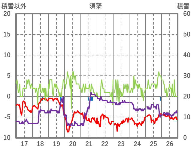 | 日 | 時 | 気温 | 降水 | 風向/風速 | 日照 | 積雪 | 降雪 |
