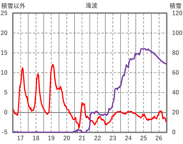 | 日 | 時 | 気温 | 降水 | 風向/風速 | 日照 | 積雪 | 降雪 |