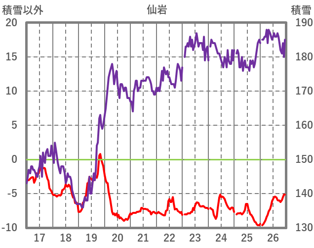 | 日 | 時 | 気温 | 降水 | 風向/風速 | 日照 | 積雪 | 降雪 |