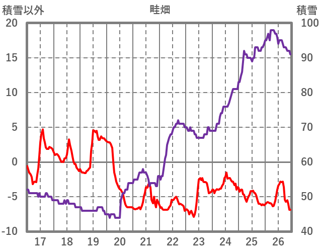 | 日 | 時 | 気温 | 降水 | 風向/風速 | 日照 | 積雪 | 降雪 |