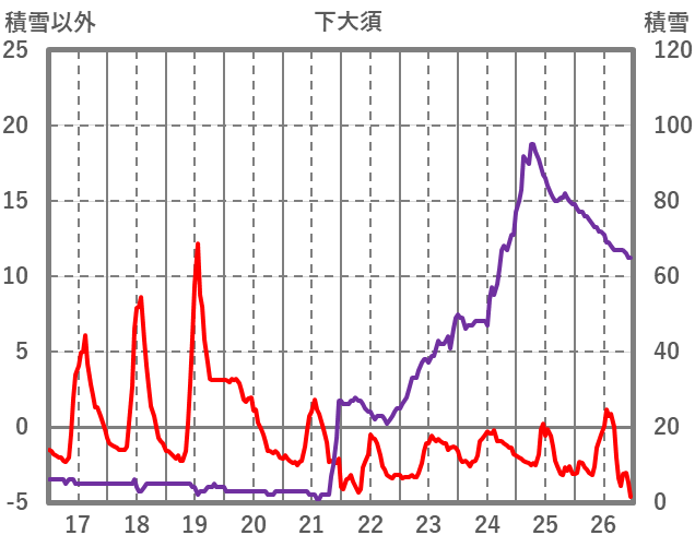 | 日 | 時 | 気温 | 降水 | 風向/風速 | 日照 | 積雪 | 降雪 |