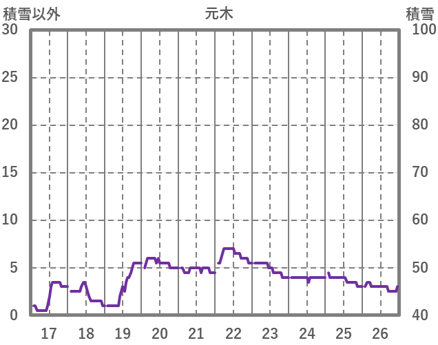 | 日 | 時 | 気温 | 降水 | 風向/風速 | 日照 | 積雪 | 降雪 |