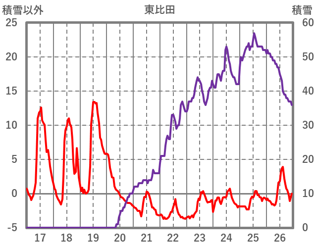| 日 | 時 | 気温 | 降水 | 風向/風速 | 日照 | 積雪 | 降雪 |