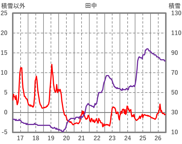 | 日 | 時 | 気温 | 降水 | 風向/風速 | 日照 | 積雪 | 降雪 |