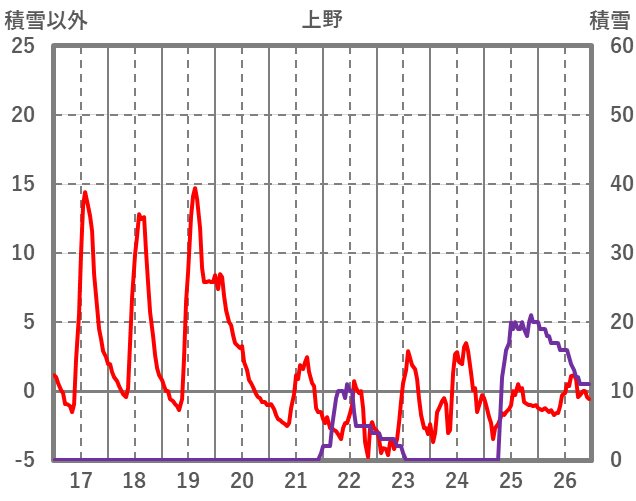 | 日 | 時 | 気温 | 降水 | 風向/風速 | 日照 | 積雪 | 降雪 |