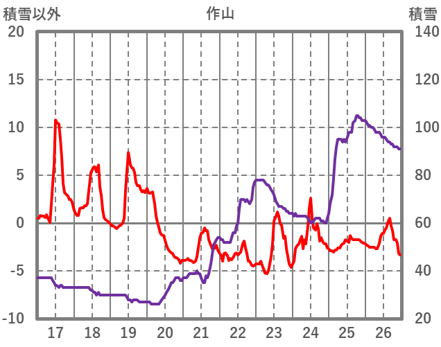 | 日 | 時 | 気温 | 降水 | 風向/風速 | 日照 | 積雪 | 降雪 |