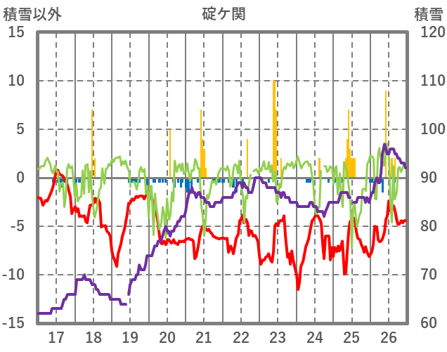 | 日 | 時 | 気温 | 降水 | 風向/風速 | 日照 | 積雪 | 降雪 |