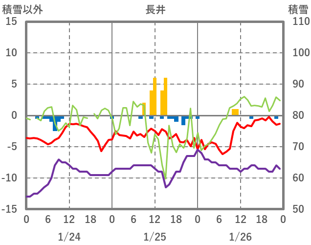 | 日 | 時 | 気温 | 降水 | 風向/風速 | 日照 | 積雪 | 降雪 |