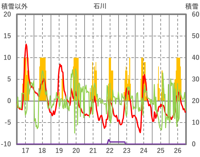 | 日 | 時 | 気温 | 降水 | 風向/風速 | 日照 | 積雪 | 降雪 |