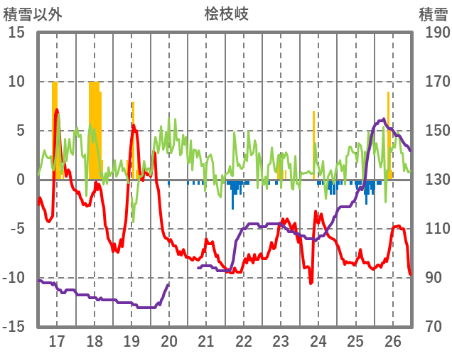| 日 | 時 | 気温 | 降水 | 風向/風速 | 日照 | 積雪 | 降雪 |