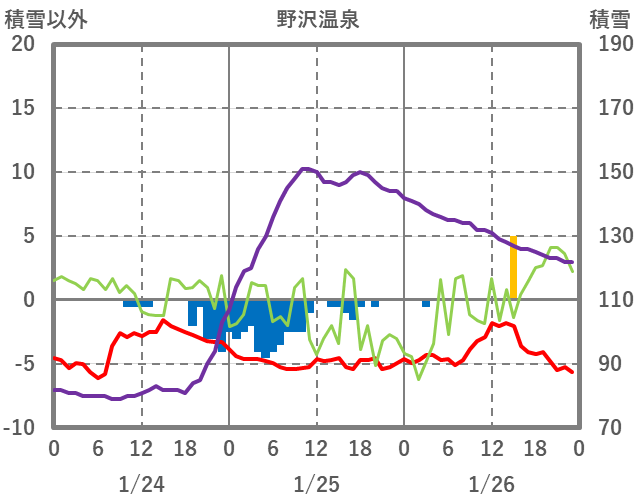 | 日 | 時 | 気温 | 降水 | 風向/風速 | 日照 | 積雪 | 降雪 |