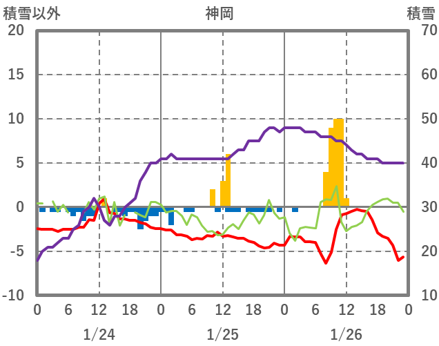 | 日 | 時 | 気温 | 降水 | 風向/風速 | 日照 | 積雪 | 降雪 |