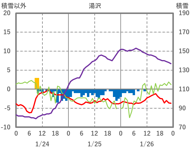 | 日 | 時 | 気温 | 降水 | 風向/風速 | 日照 | 積雪 | 降雪 |