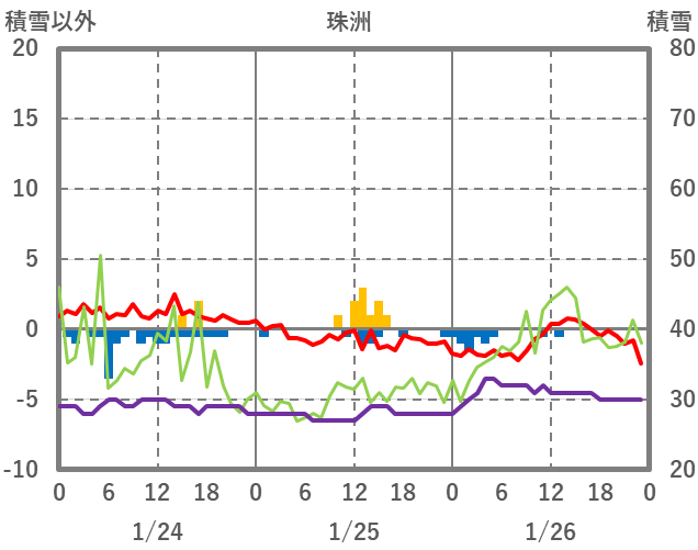 | 日 | 時 | 気温 | 降水 | 風向/風速 | 日照 | 積雪 | 降雪 |
