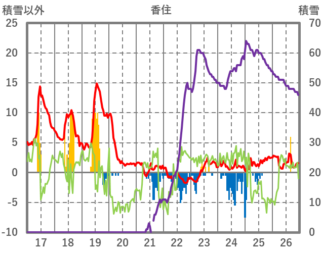 | 日 | 時 | 気温 | 降水 | 風向/風速 | 日照 | 積雪 | 降雪 |