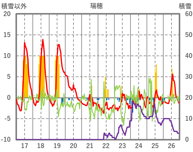 | 日 | 時 | 気温 | 降水 | 風向/風速 | 日照 | 積雪 | 降雪 |