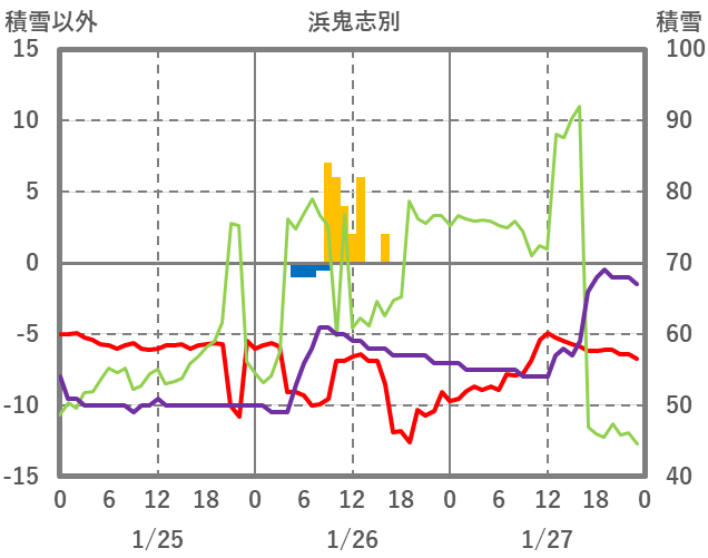 | 日 | 時 | 気温 | 降水 | 風向/風速 | 日照 | 積雪 | 降雪 |