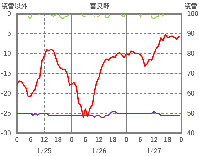 | 日 | 時 | 気温 | 降水 | 風向/風速 | 日照 | 積雪 | 降雪 |