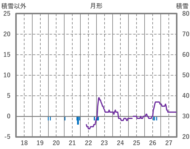 | 日 | 時 | 気温 | 降水 | 風向/風速 | 日照 | 積雪 | 降雪 |