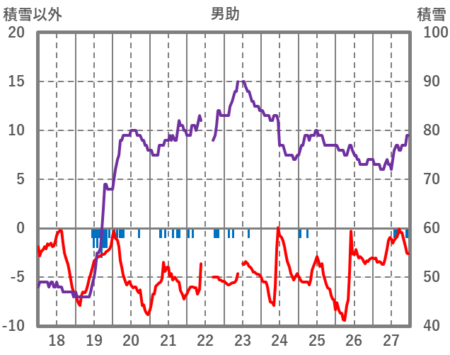 | 日 | 時 | 気温 | 降水 | 風向/風速 | 日照 | 積雪 | 降雪 |