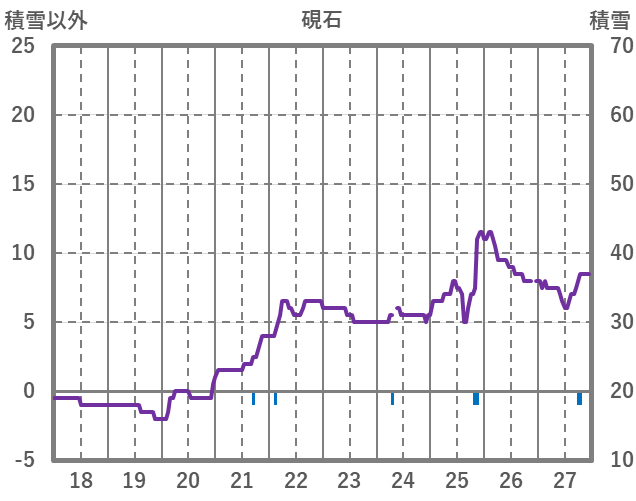 | 日 | 時 | 気温 | 降水 | 風向/風速 | 日照 | 積雪 | 降雪 |